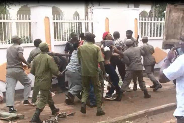 Mgambo wa Manispaa ya Morogoro wakiwakamata kwa nguvu baadhi ya Wananchi waliokaidi zoezi la kuondolewa kwa mama ntilie katikati ya Mji