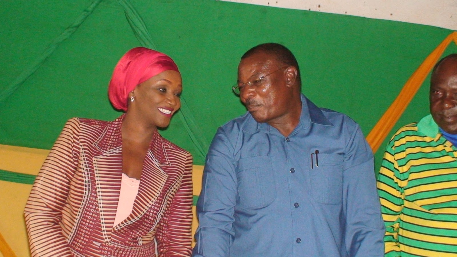 | Naibu Waziri wa TAMISEMI Mh, Josephat Kandege akiteta Jambo na Mbunge wa Viti maalumu mkoa wa Njombe Mh, Neema Mgaya Katika ukumbi wa CCM Ludewa mjini |